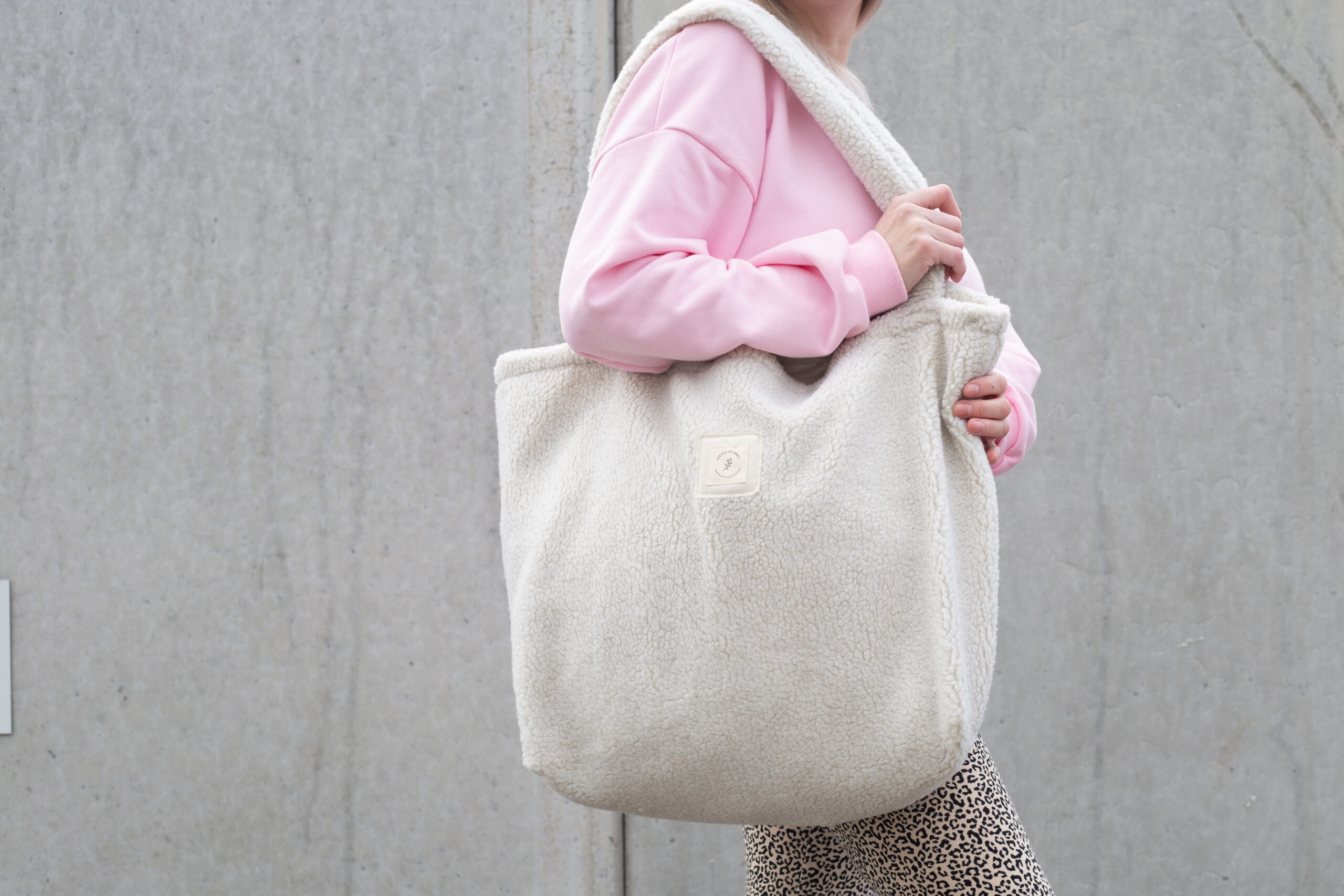 Kuschelweiche Tasche – die XL Bag Teddy in zwei extra geräumigen Größen. Außen UND Innen schön, da unsere Tasche mit auch gefüttert ist. Und in diese Tasche passt super viel rein!